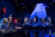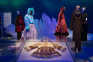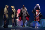 Expedition: Fashion from the Extreme examined high fashion inspired by clothing made for survival in the most inhospitable environments on earth and beyond. Today’s luxurious parkas trace their roots to the “heroic era” of polar navigation (1890 to 1922), while down-filled “puffer” coats and backpacks were originally perfected for extreme mountain climbing in the mid-twentieth century. Experimental, high tech materials made for exploration to otherworldly realms — such as neoprene (deep sea) and Mylar (outer space) — made their way onto the runway.