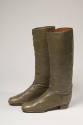 DescriptionPair of high riding boots in olive green lambskin; low stacked heelExhibitions