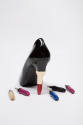 DescriptionBlack patent leather pumps with Absolute Red plastic replica half open lipstick in gold lipstick case stiletto heel, five interchangeable screw in lipstick heels in Absolute Red, Deep Purple, Total Black, Electric Blue and Pure Nude
