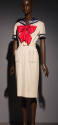 The “sailor suit” look of early women’s active attire (at left) became a recurring motif in fashionable, summer sportswear during the mid-20th century. For this dress, Norman Norell exaggerated the decorative and feminine qualities of the uniform by enlarging the necktie, forming it into a bow, and rendering it in a luxurious silk faille.