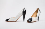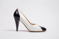 DescriptionSpectator pumps in black and white leather with flame effect counter and toe cap with rounded point toe and high conical heelCollections