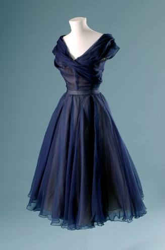 Looking back, Dior recalled, “We came from an epoch of war and uniforms, with women like soldiers with boxers’ shoulders. I designed flower women, soft shoulders, full busts, waists as narrow as lianas and skirts as corollas.” Fashion is always about change and novelty, but Dior’s 1947 collection marked an especially dramatic and influential transition, away from the boxy jackets and short narrow skirts of the war years, and towards a look of hyper-femininity based on an hourglass figure and long, full skirts.